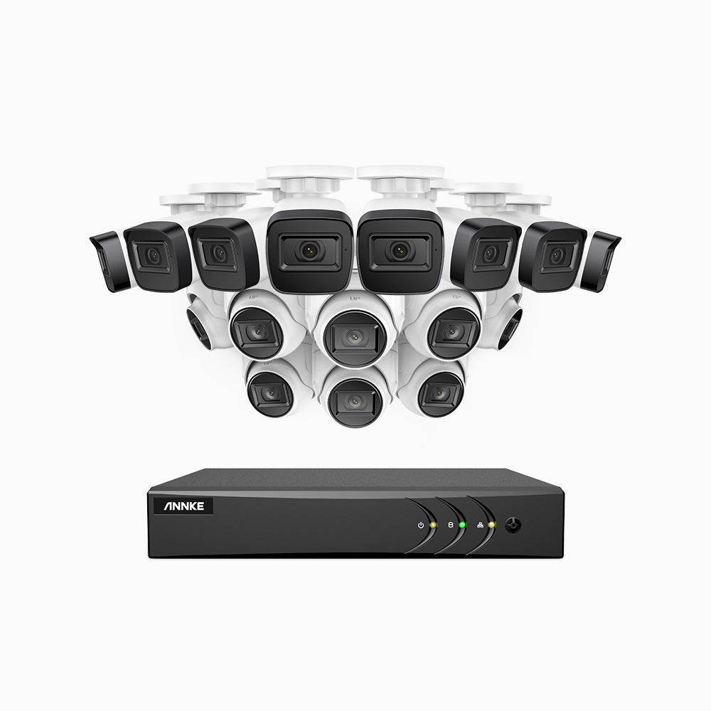 EL200 - 1080p 16 Channel Outdoor Wired Security CCTV System with 8 Bullet & 8 Turret Cameras, 3.6 MM Lens, Smart DVR with Human & Vehicle Detection, 66 ft Infrared Night Vision, 4-in-1 Output Signal, IP67
