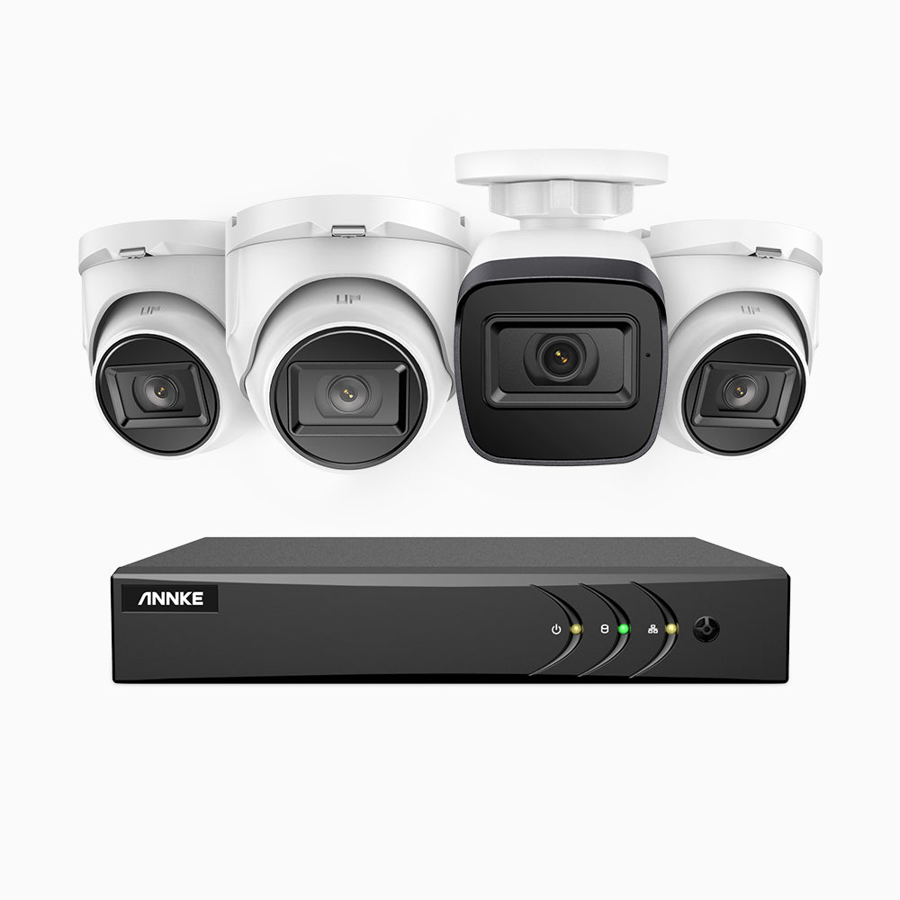 EL200 - 1080p 4 Channel Outdoor Wired Security CCTV System with 1 Bullet & 3 Turret Cameras, 3.6 MM Lens, Smart DVR with Human & Vehicle Detection, 66 ft Infrared Night Vision, 4-in-1 Output Signal, IP67