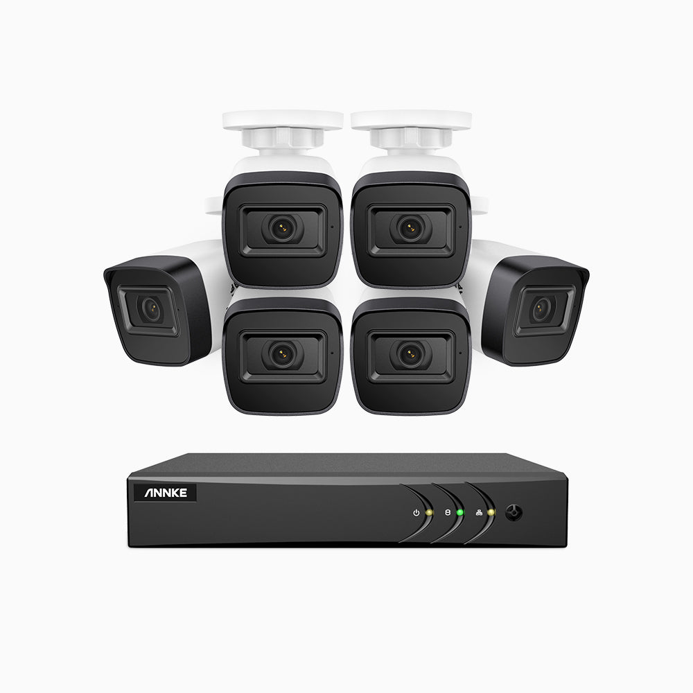 EL200 - 1080p 8 Channel Outdoor Wired Security CCTV System with 6 Cameras, 3.6 MM Lens, Smart DVR with Human & Vehicle Detection, 66 ft Infrared Night Vision, 4-in-1 Output Signal, IP67