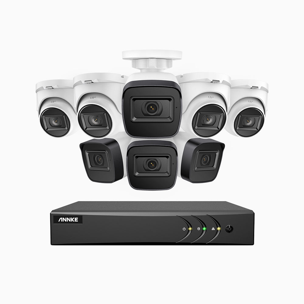 EL200 - 1080p 8 Channel Outdoor Wired Security CCTV System with 4 Bullet & 4 Turret Cameras, 3.6 MM Lens, Smart DVR with Human & Vehicle Detection, 66 ft Infrared Night Vision, 4-in-1 Output Signal, IP67