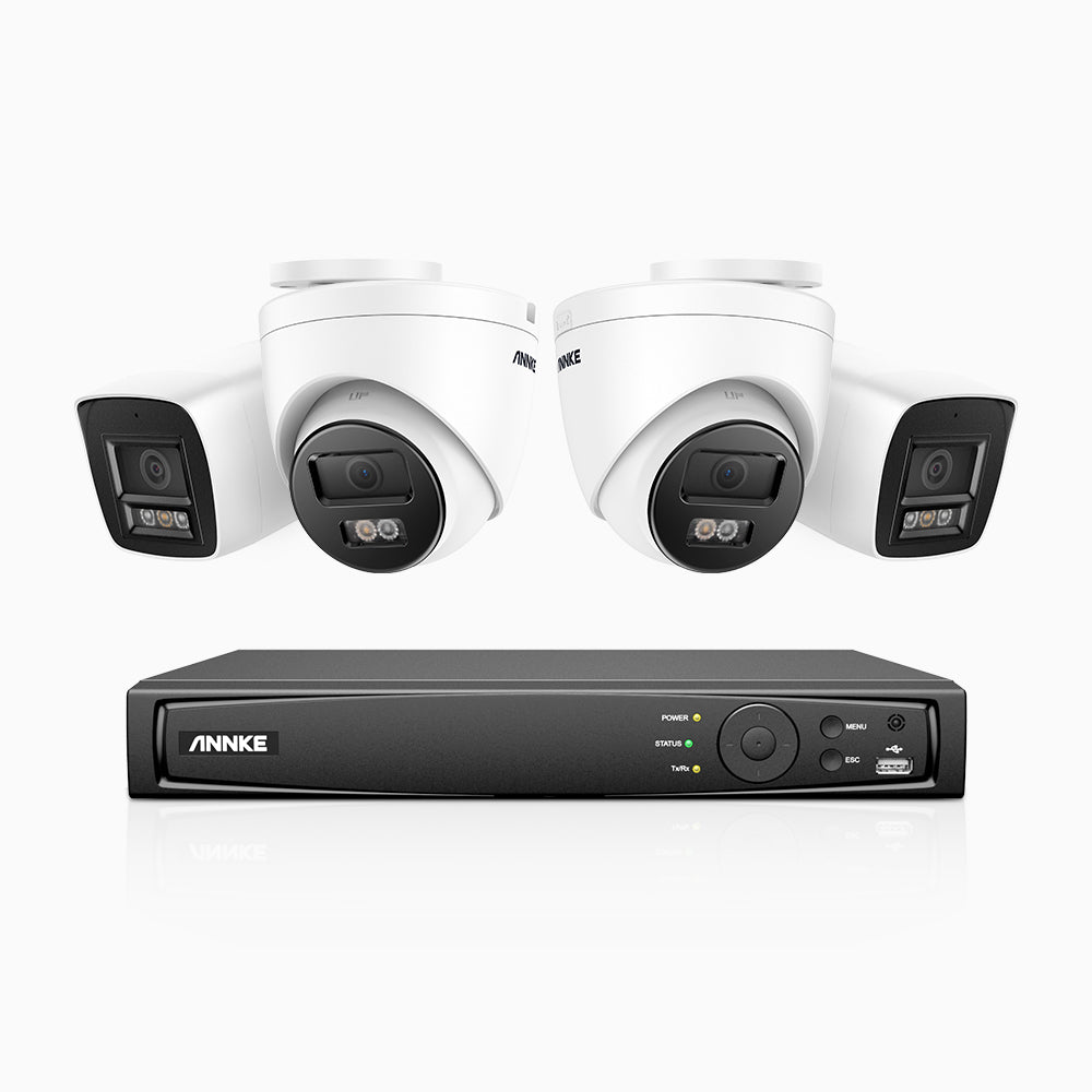 H1200 - 4K 12MP 8 Channel PoE Security System with 2 Bullet & 2 Turret Cameras, Colour & IR Night Vision, Human & Vehicle Detection, H.265+, Built-in Microphone, Max. 512 GB Local Storage, IP67