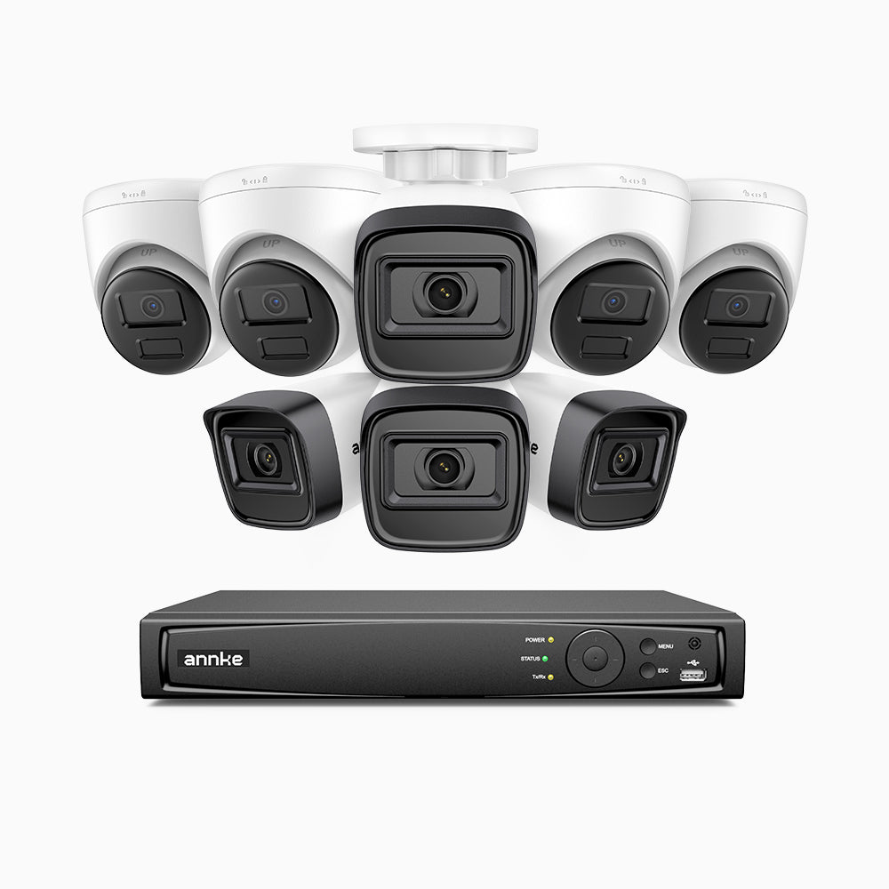 H300 - 2K 3MP 16 Channel PoE Security System with 4 Bullet & 4 Turret Cameras, EXIR 2.0 Night Vision, Motion Detection, H.265+, IP67 Waterproof