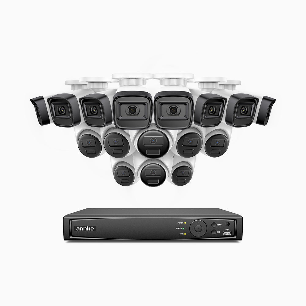 H300 - 2K 3MP 16 Channel PoE Security System with 8 Bullet & 8 Turret Cameras, EXIR 2.0 Night Vision, Motion Detection, H.265+, IP67 Waterproof