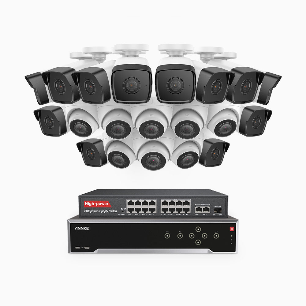 H500 - 5MP 32 Channel PoE Security CCTV System with 12 Bullet & 8 Turret Cameras, EXIR 2.0 Night Vision, Built-in Mic & SD Card Slot, Works with Alexa, 16-Port PoE Switch Included, IP67
