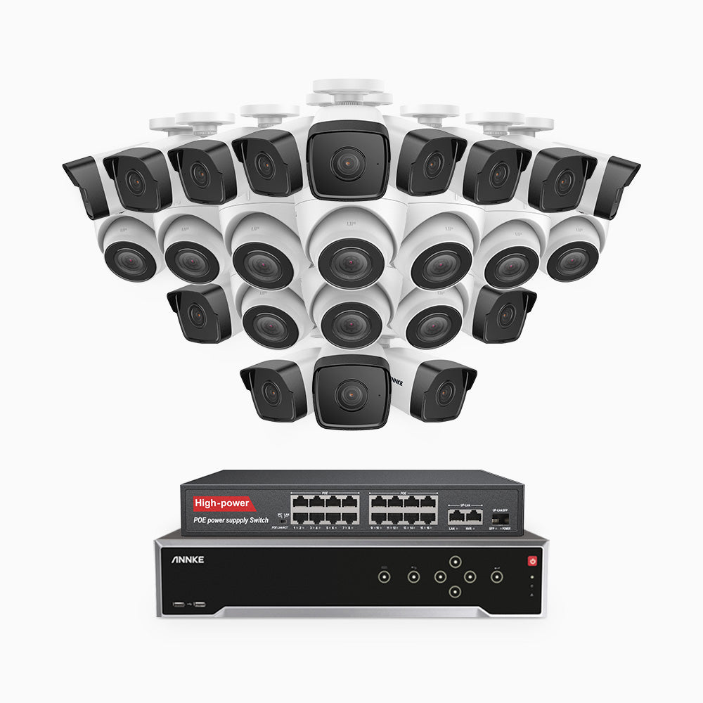 H500 - 5MP 32 Channel PoE Security CCTV System with 14 Bullet & 10 Turret Cameras, EXIR 2.0 Night Vision, Built-in Mic & SD Card Slot, Works with Alexa, 16-Port PoE Switch Included, IP67