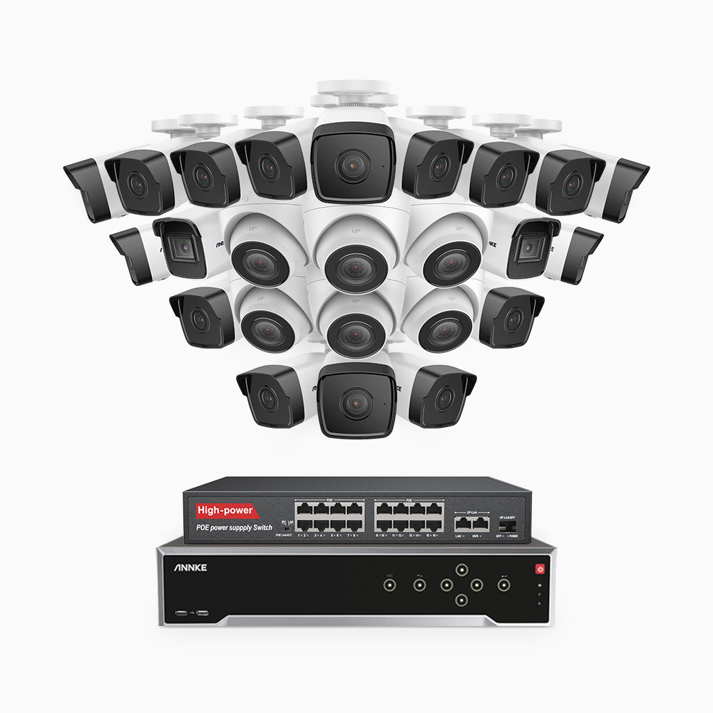 H500 - 5MP 32 Channel PoE Security CCTV System with 18 Bullet & 6 Turret Cameras, EXIR 2.0 Night Vision, Built-in Mic & SD Card Slot, Works with Alexa, 16-Port PoE Switch Included, IP67