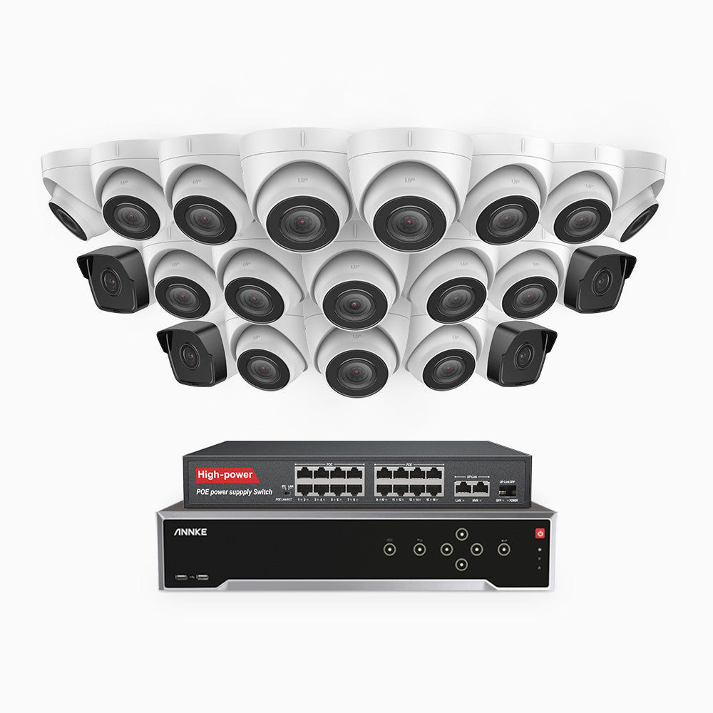 H500 - 5MP 32 Channel PoE Security CCTV System with 4 Bullet & 16 Turret Cameras, EXIR 2.0 Night Vision, Built-in Mic & SD Card Slot, Works with Alexa, 16-Port PoE Switch Included, IP67