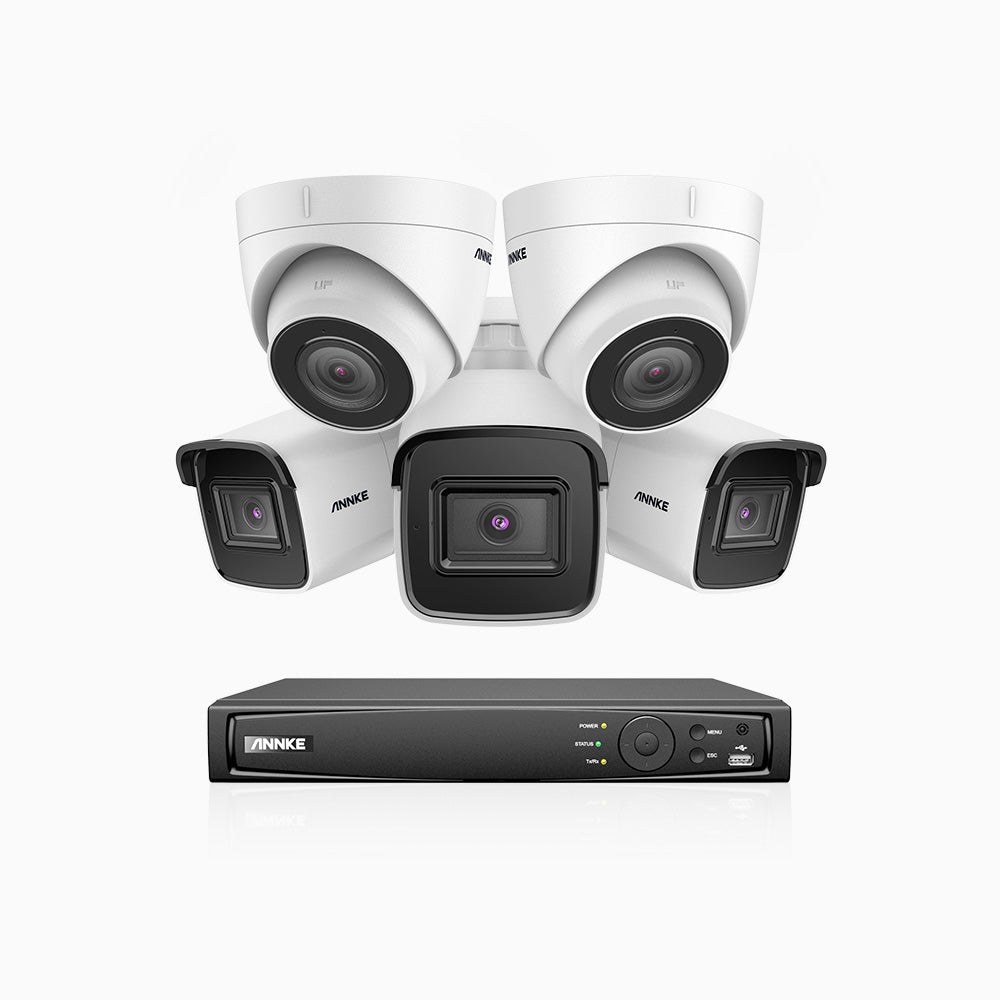 H500 - 5MP 8 Channel PoE CCTV System with 3 Bullet & 2 Turret Cameras, EXIR 2.0 Night Vision, Built-in Mic & SD Card Slot, RTSP Supported, Works with Alexa, IP67