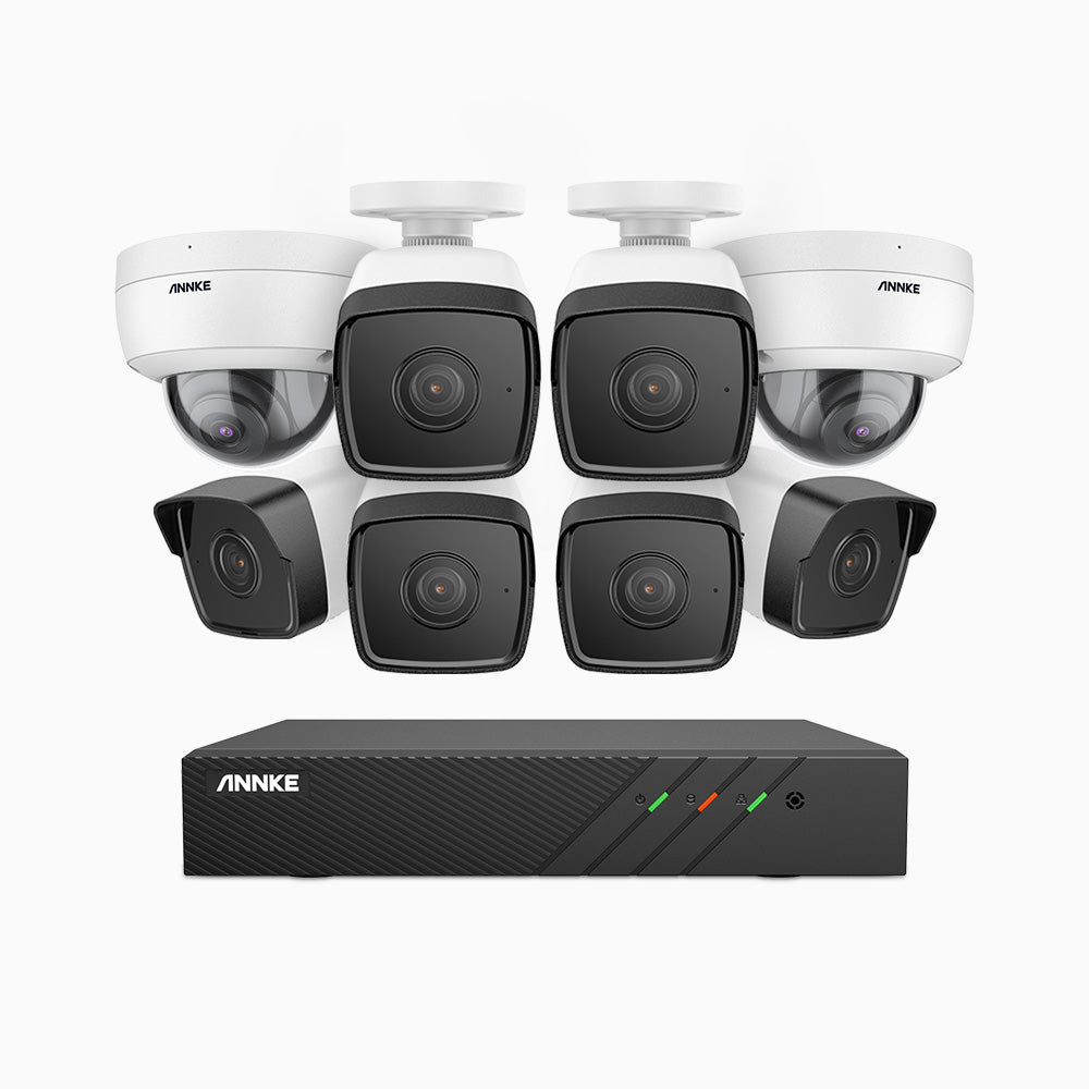 H500 - 5MP 8 Channel PoE CCTV System with 6 Bullet & 2 Dome Cameras, EXIR 2.0 Night Vision, Built-in Mic & SD Card Slot, RTSP Supported, Works with Alexa, IP67