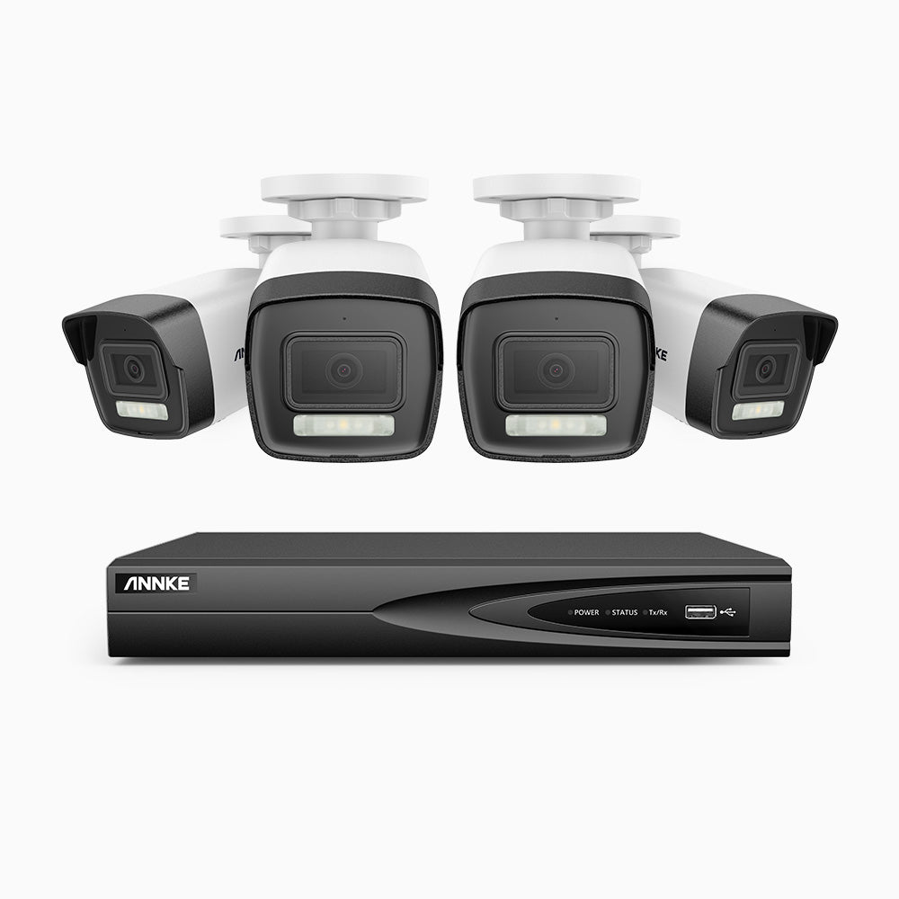 H500P - 3K 4 Channel 4 Cameras PoE Security System, Colour & IR Night Vision, 3072*1728 Resolution, f/1.6 Aperture (0.005 Lux), Human & Vehicle Detection, Built-in Microphone, IP67