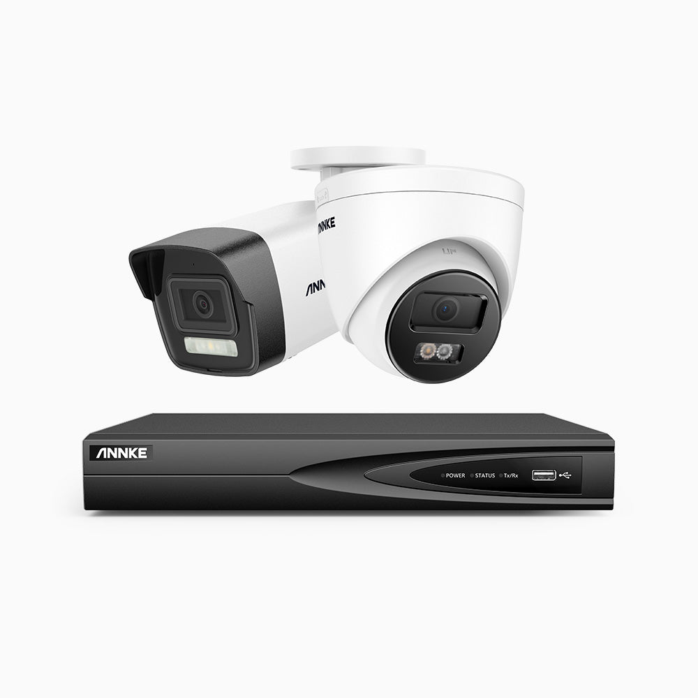 H500P - 3K 4 Channel PoE Security System with 1 Bullet & 1 Turret Cameras, Colour & IR Night Vision, 3072*1728 Resolution, f/1.6 Aperture (0.005 Lux), Human & Vehicle Detection, Built-in Microphone, IP67