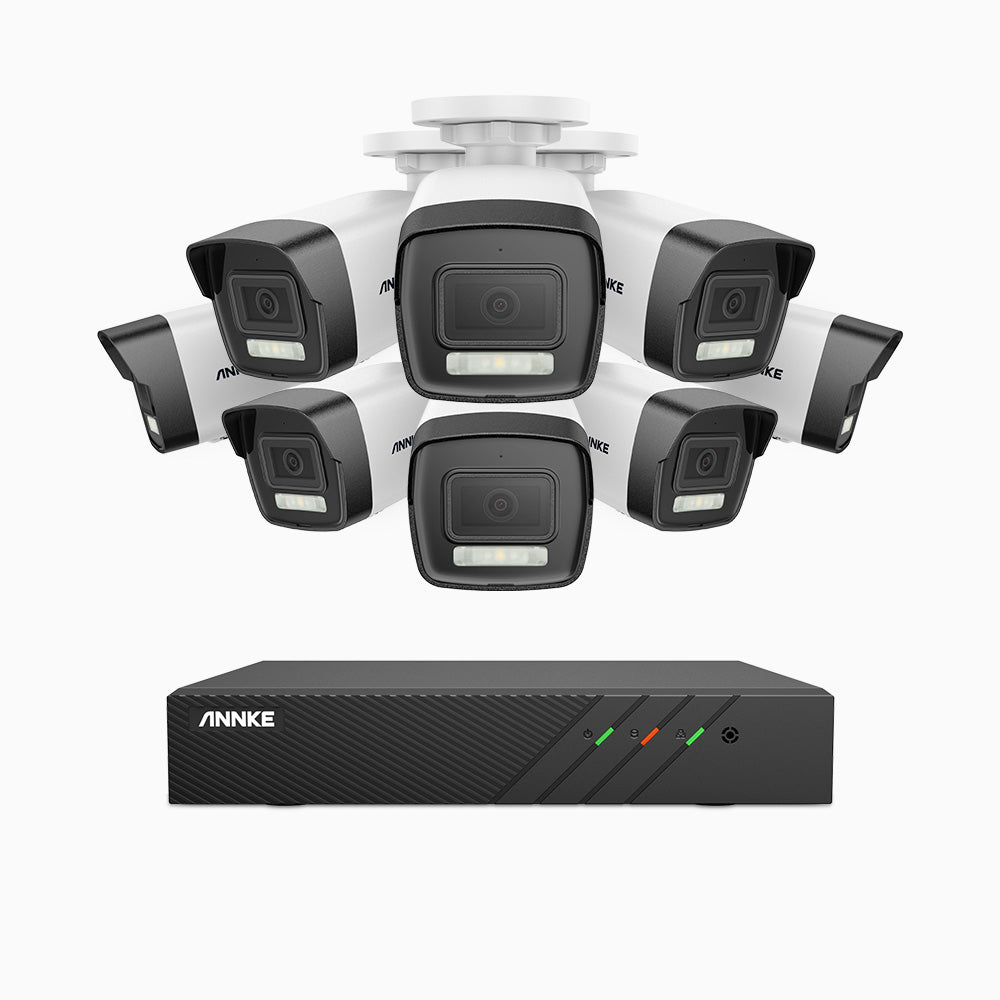 H500P - 3K 8 Channel 8 Cameras PoE Security System, Colour & IR Night Vision, 3072*1728 Resolution, f/1.6 Aperture (0.005 Lux), Human & Vehicle Detection, Built-in Microphone, IP67