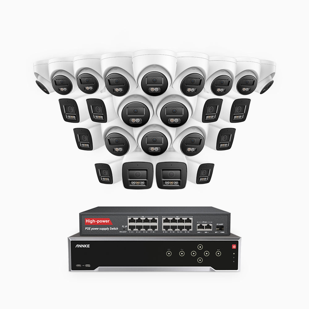 H800 - 4K 32 Channel PoE Security CCTV System with 10 Bullet & 14 Turret Cameras, Human & Vehicle Detection, Colour & IR Night Vision, Built-in Mic, RTSP Supported, 16-Port PoE Switch Included