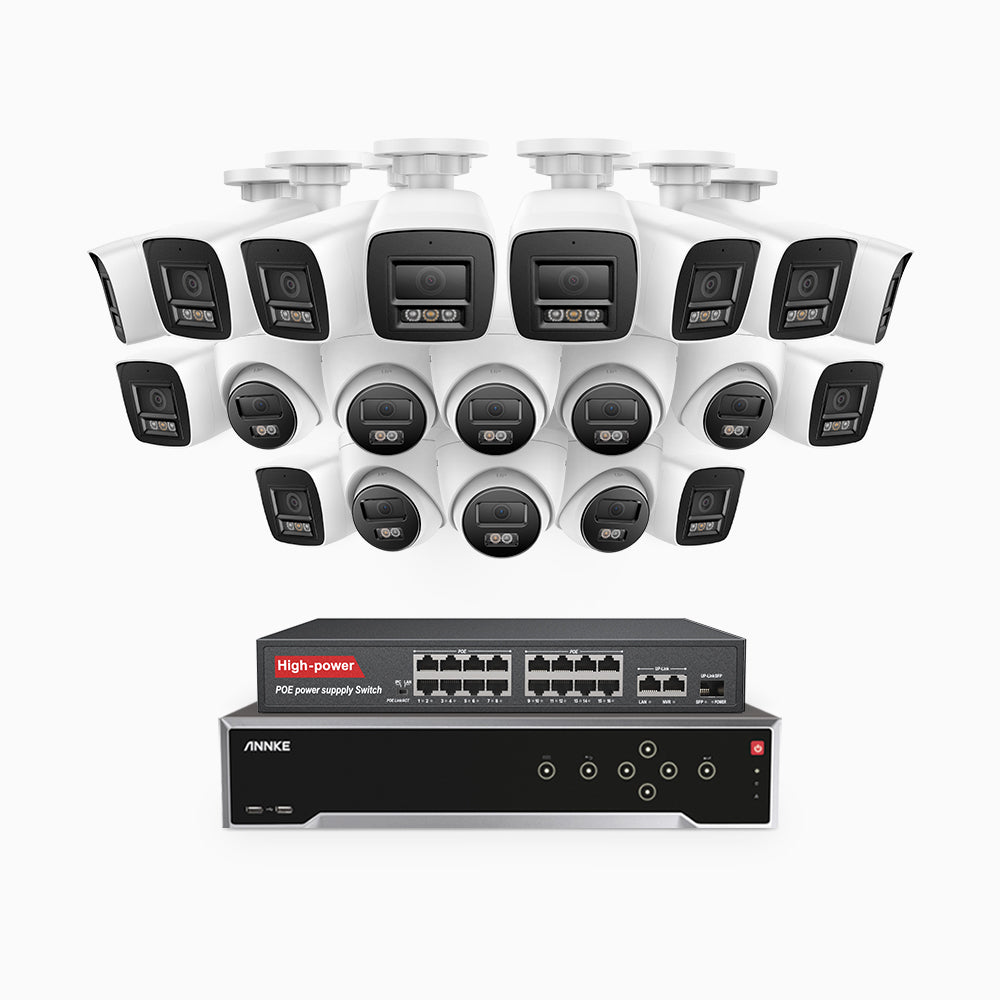 H800 - 4K 32 Channel PoE Security CCTV System with 12 Bullet & 8 Turret Cameras, Human & Vehicle Detection, Colour & IR Night Vision, Built-in Mic, RTSP Supported, 16-Port PoE Switch Included