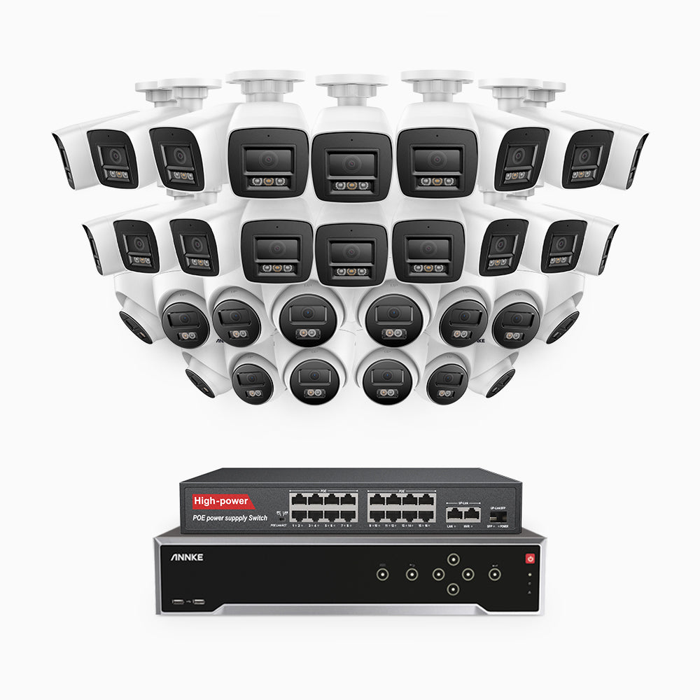 H800 - 4K 32 Channel PoE Security CCTV System with 18 Bullet & 14 Turret Cameras, Human & Vehicle Detection, Colour & IR Night Vision, Built-in Mic, RTSP Supported, 16-Port PoE Switch Included