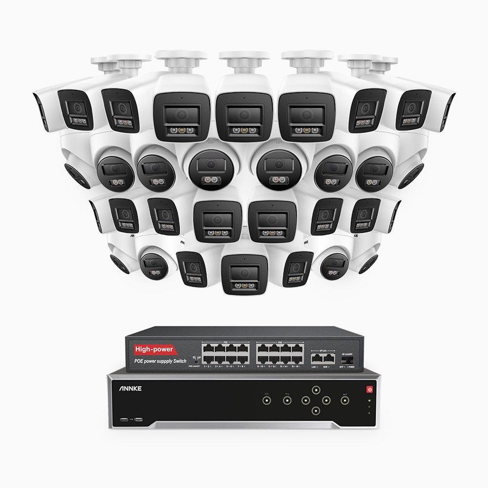 H800 - 4K 32 Channel PoE Security CCTV System with 20 Bullet & 12 Turret Cameras, Human & Vehicle Detection, Colour & IR Night Vision, Built-in Mic, RTSP Supported, 16-Port PoE Switch Included