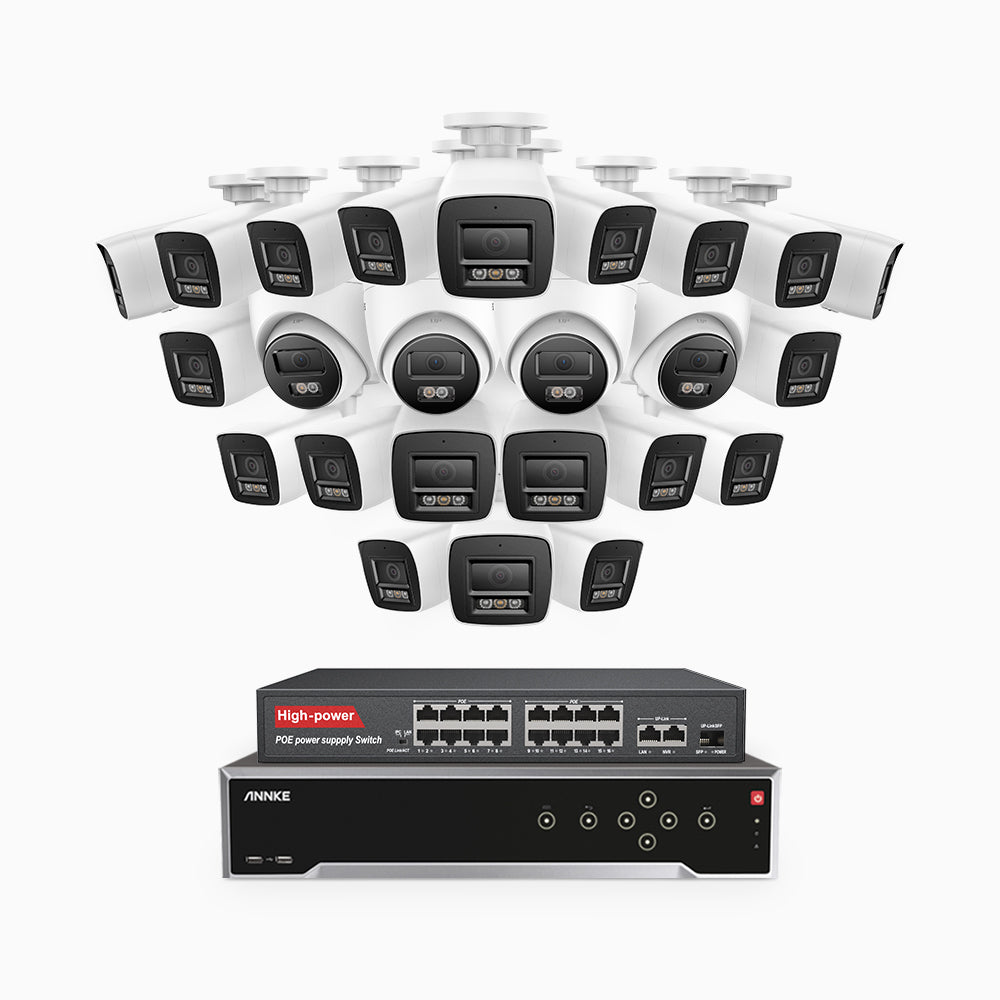 H800 - 4K 32 Channel PoE Security CCTV System with 20 Bullet & 4 Turret Cameras, Human & Vehicle Detection, Colour & IR Night Vision, Built-in Mic, RTSP Supported, 16-Port PoE Switch Included