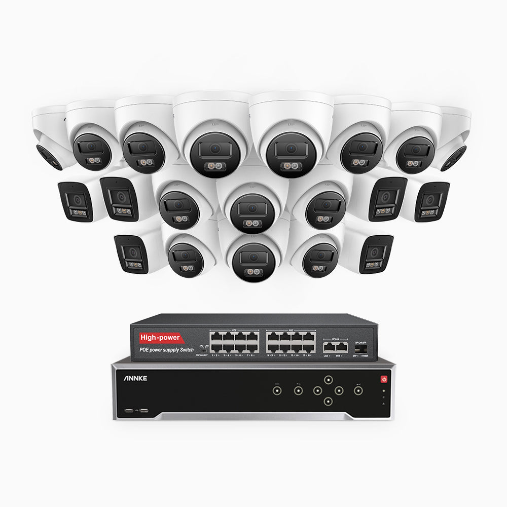 H800 - 4K 32 Channel PoE Security CCTV System with 6 Bullet & 14 Turret Cameras, Human & Vehicle Detection, Colour & IR Night Vision, Built-in Mic, RTSP Supported, 16-Port PoE Switch Included