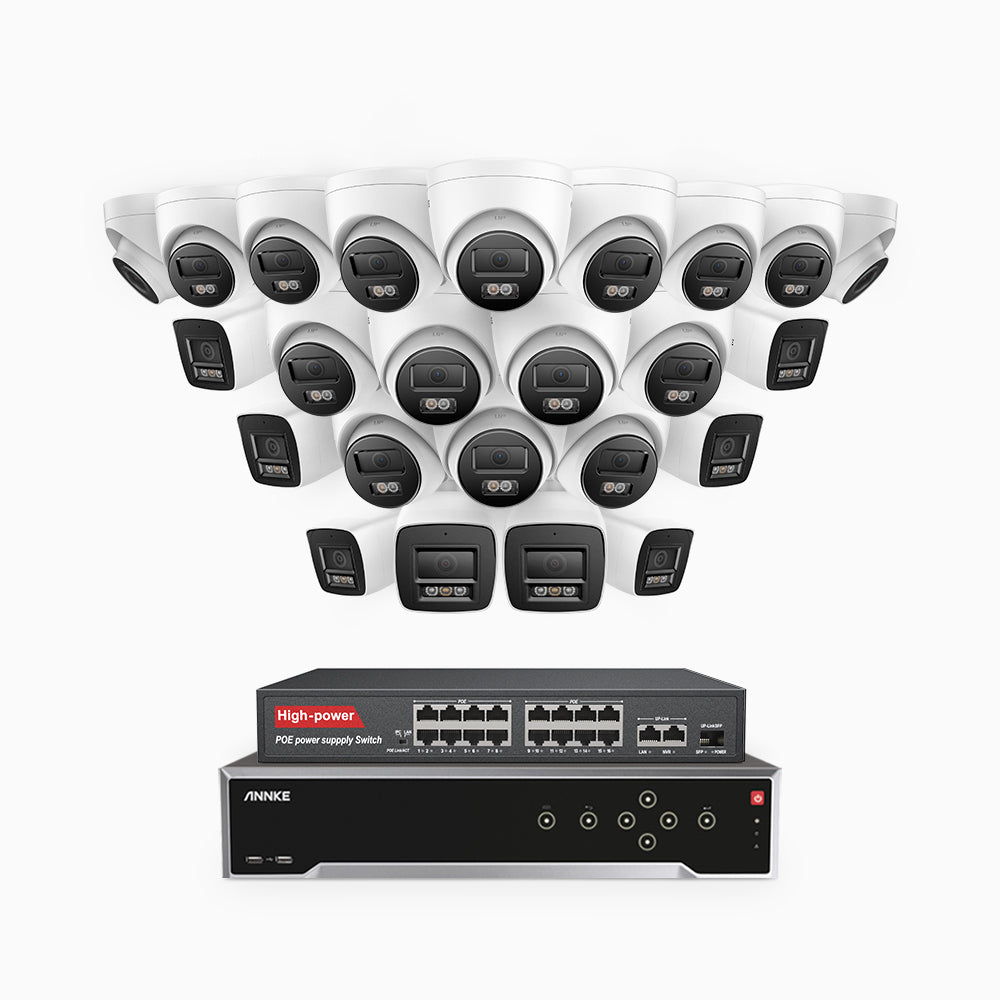 H800 - 4K 32 Channel PoE Security CCTV System with 8 Bullet & 16 Turret Cameras, Human & Vehicle Detection, Colour & IR Night Vision, Built-in Mic, RTSP Supported, 16-Port PoE Switch Included