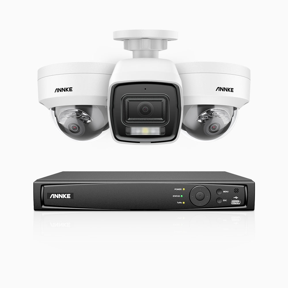 H800 - 4K 4 Channel PoE Security System with 1 Bullet & 2 Dome (IK10) Cameras, Vandal-Resistant, Human & Vehicle Detection, Colour & IR Night Vision, Built-in Mic, RTSP Supported