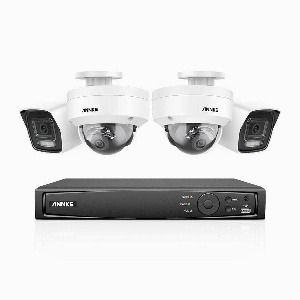H800 - 4K 4 Channel PoE Security System with 2 Bullet & 2 Dome (IK10) Cameras, Vandal-Resistant, Human & Vehicle Detection, Colour & IR Night Vision, Built-in Mic, RTSP Supported