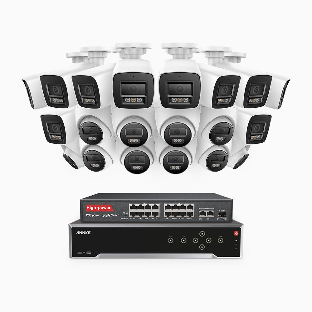 H800 - 4K 32 Channel PoE Security CCTV System with 10 Bullet & 10 Turret Cameras, Human & Vehicle Detection, Colour & IR Night Vision, Built-in Mic, RTSP Supported, 16-Port PoE Switch Included