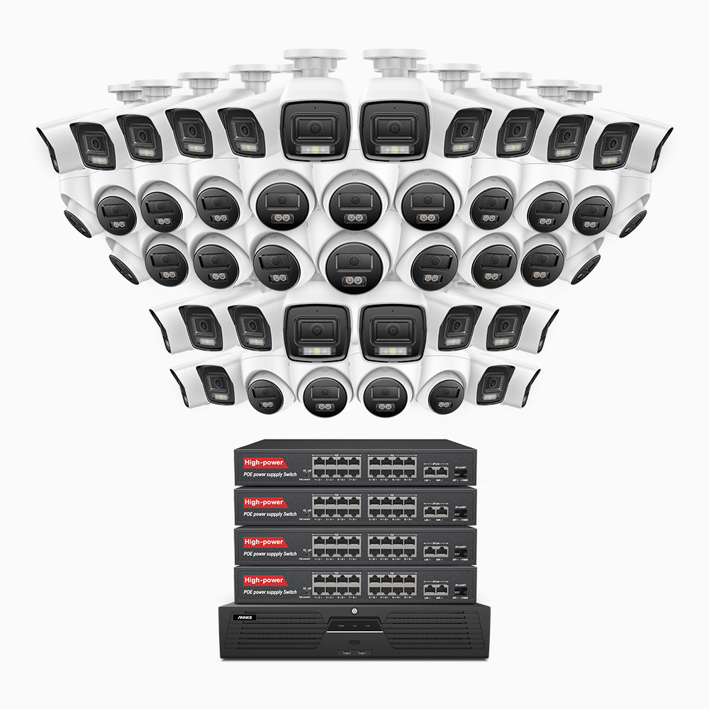 H800 - 4K 64 Channel PoE Security System with 24 Bullet & 24 Turret Cameras, Human & Vehicle Detection, Color & IR Night Vision, Built-in Mic, RTSP Supported, 16-Port PoE Switch Included