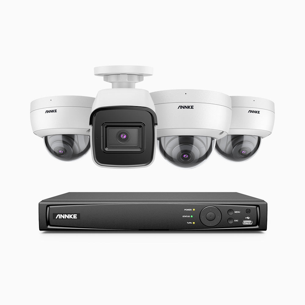 H800 - 4K 8 Channel PoE Security System with 1 Bullet & 3 Dome (IK10) Cameras, Vandal-Resistant, Human & Vehicle Detection, Colour & IR Night Vision, Built-in Mic, RTSP Supported