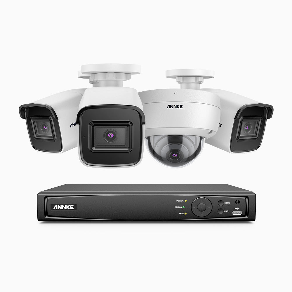 H800 - 4K 8 Channel PoE Security System with 3 Bullet & 1 Dome (IK10) Cameras, Vandal-Resistant, Human & Vehicle Detection, Colour & IR Night Vision, Built-in Mic, RTSP Supported