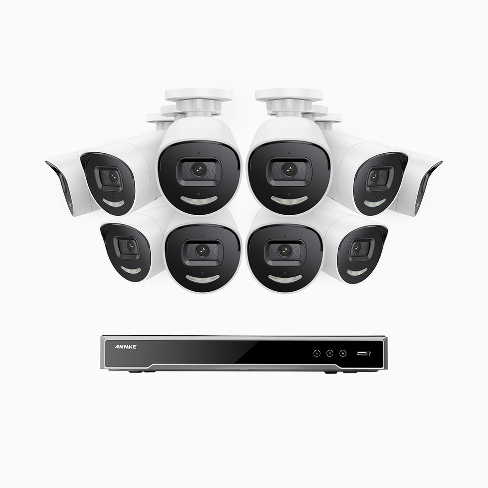 H800X - 4K 16 Channel 10 Cameras PoE Security System, 1/1.8'' BSI Sensor, f/1.6 Aperture (0.003 Lux), Siren & Strobe Alarm, 2CH 4K Decoding Capability, Human & Vehicle Detection, Perimeter Protection, All-Metal Housing