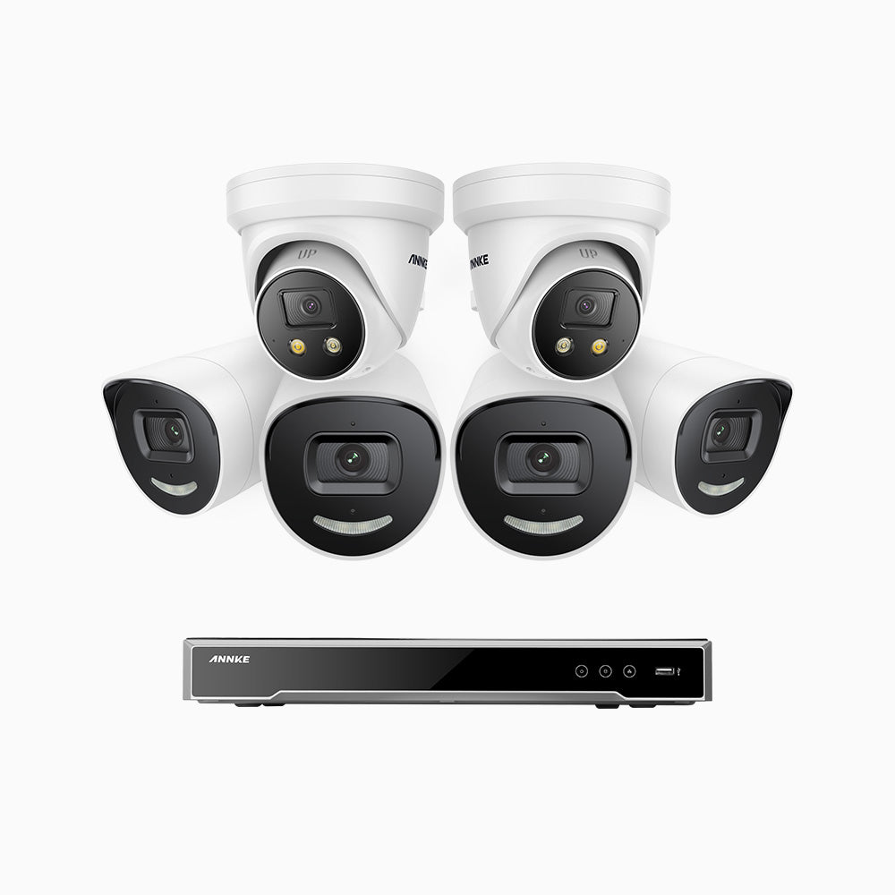 H800X - 4K 16 Channel PoE Security System with 4 Bullet & 2 Turret Cameras, 1/1.8'' BSI Sensor, f/1.6 Aperture (0.003 Lux), Siren & Strobe Alarm, 2CH 4K Decoding Capability, Human & Vehicle Detection, Perimeter Protection, All-Metal Housing