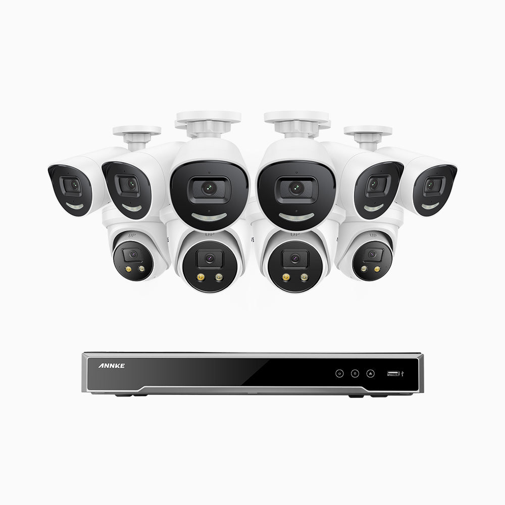 H800X - 4K 16 Channel PoE Security System with 6 Bullet & 4 Turret Cameras, 1/1.8'' BSI Sensor, f/1.6 Aperture (0.003 Lux), Siren & Strobe Alarm, 2CH 4K Decoding Capability, Human & Vehicle Detection, Perimeter Protection, All-Metal Housing