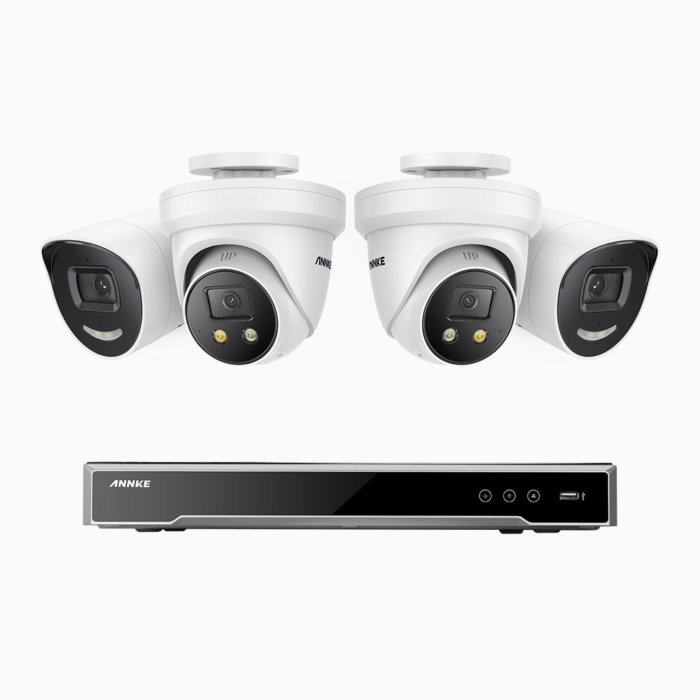 H800X - 4K 8 Channel PoE Security System with 2 Bullet & 2 Turret Cameras, 1/1.8'' BSI Sensor, f/1.6 Aperture (0.003 Lux), Siren & Strobe Alarm, 2CH 4K Decoding Capability, Human & Vehicle Detection, Perimeter Protection, All-Metal Housing