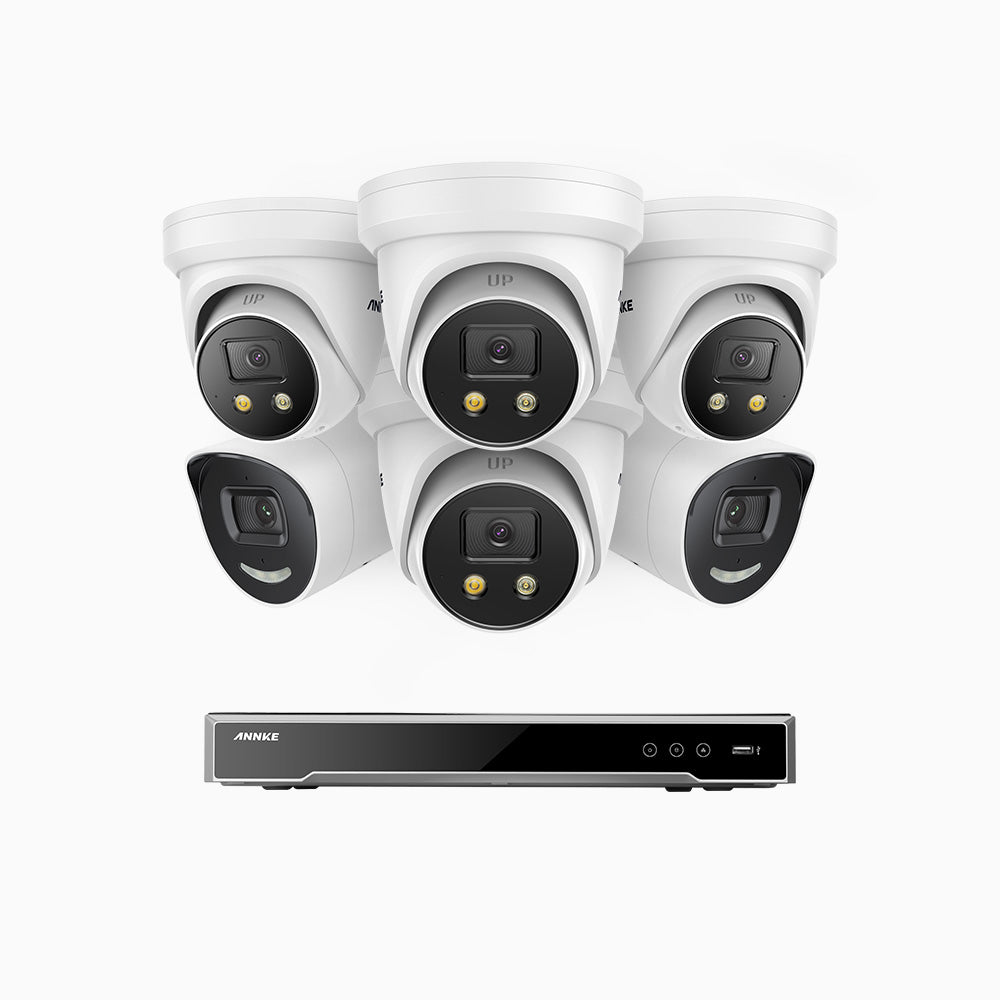H800X - 4K 8 Channel PoE Security System with 2 Bullet & 4 Turret Cameras, 1/1.8'' BSI Sensor, f/1.6 Aperture (0.003 Lux), Siren & Strobe Alarm, 2CH 4K Decoding Capability, Human & Vehicle Detection, Perimeter Protection, All-Metal Housing