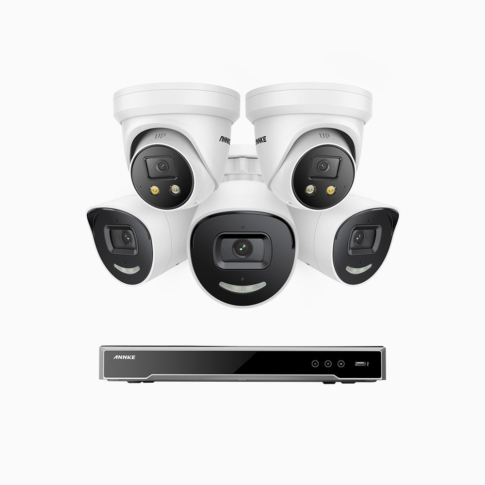 H800X - 4K 8 Channel PoE Security System with 3 Bullet & 2 Turret Cameras, 1/1.8'' BSI Sensor, f/1.6 Aperture (0.003 Lux), Siren & Strobe Alarm, 2CH 4K Decoding Capability, Human & Vehicle Detection, Perimeter Protection, All-Metal Housing