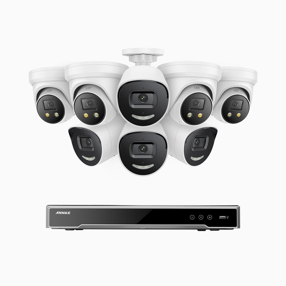 H800X - 4K 8 Channel PoE Security System with 4 Bullet & 4 Turret Cameras, 1/1.8'' BSI Sensor, f/1.6 Aperture (0.003 Lux), Siren & Strobe Alarm, 2CH 4K Decoding Capability, Human & Vehicle Detection, Perimeter Protection, All-Metal Housing
