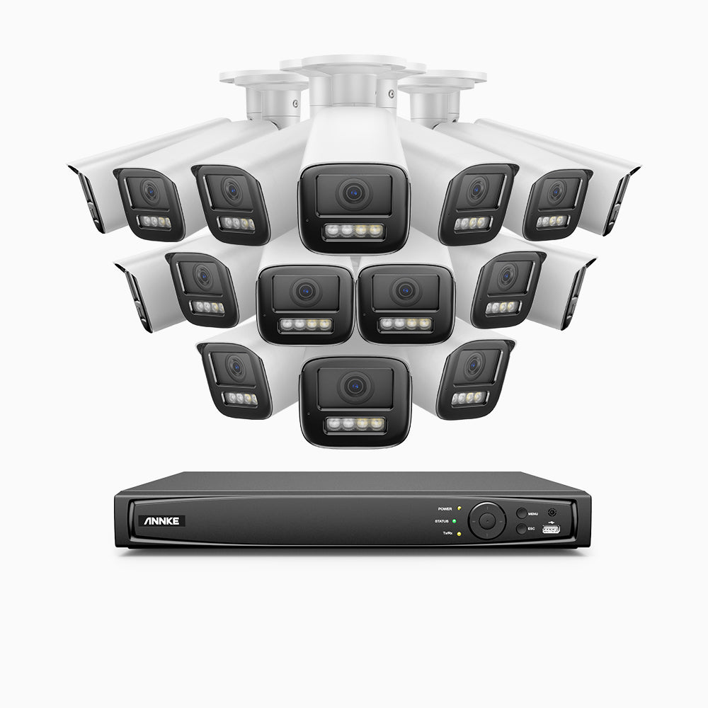 HZ804 - 4K 16 Channel 16 Cameras PoE Security System, 4X Optical Zoom, 2.8 - 12 MM Motorized Varifocal Lens, Smart Dual Light Night Vision, Motion Detection 2.0, Built-In Microphone, Siren & Strobe Alarm, Upgraded Version