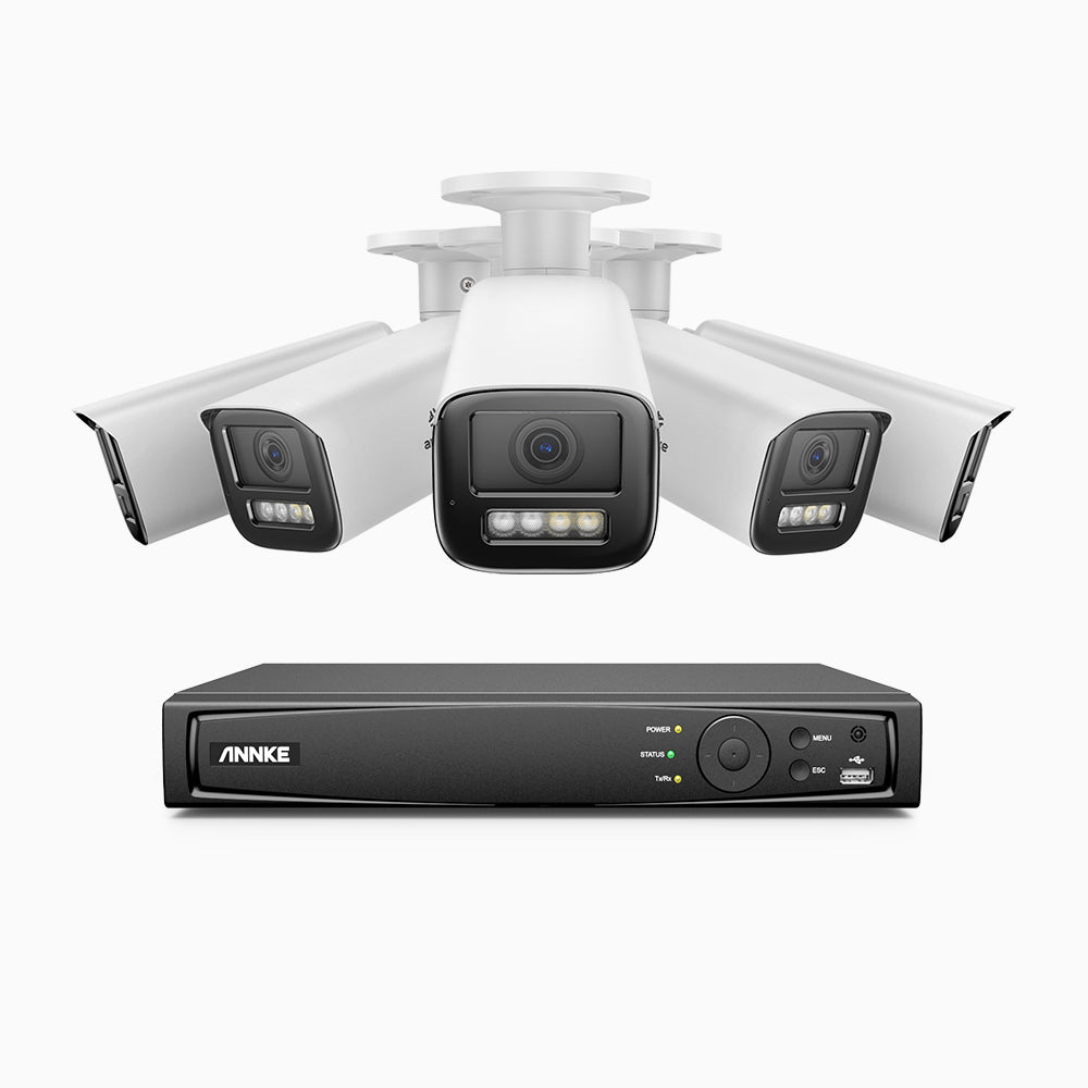 HZ804 - 4K 8 Channel 5 Cameras PoE Security System, 4X Optical Zoom, 2.8 - 12 MM Motorized Varifocal Lens, Smart Dual Light Night Vision, Motion Detection 2.0, Built-In Microphone, Siren & Strobe Alarm, Upgraded Version