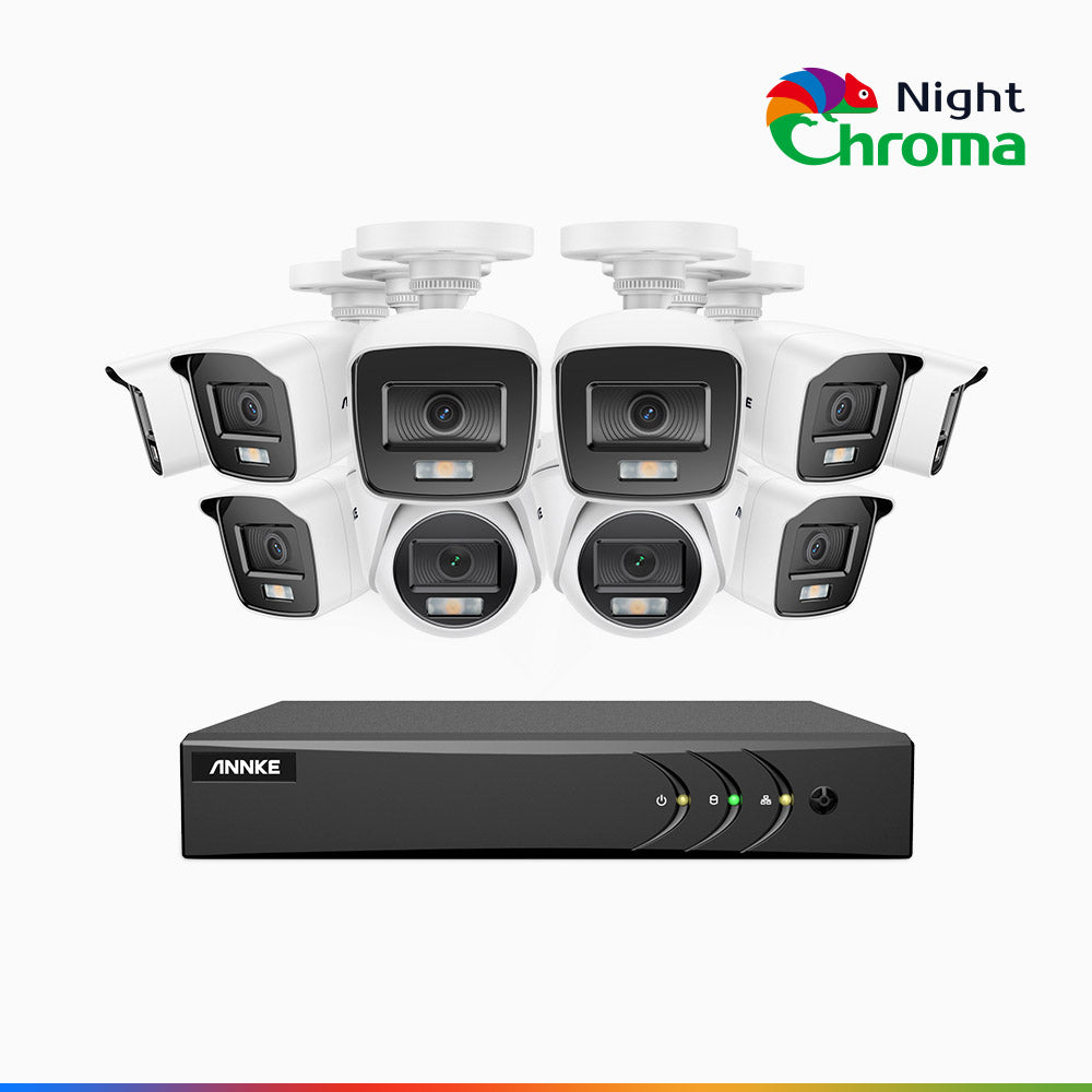 NightChromaTM NAK200 - 1080P 16 Channel Wired CCTV System with 8 Bullet & 2 Turret Cameras, Acme Colour Night Vision, f/1.0 Super Aperture, 0.001 Lux, 121° FoV, Active Alignment