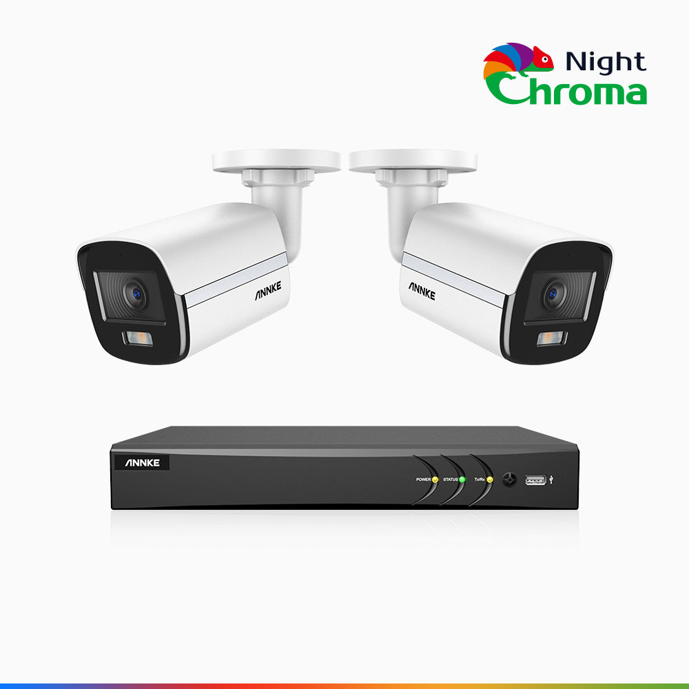 NightChromaTM NAK500 - Updated Version, 3K 8 Channel 2 Cameras TVI Security System, Acme Colour Night Vision, 2960 × 1665 Resolution, f/1.0 Aperture (0.001 Lux), Built-in Microphone, IP67