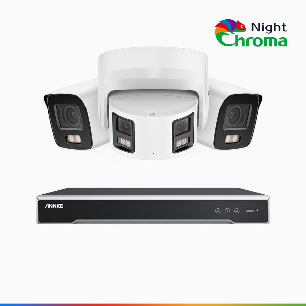 NDCK800 - 8 Channel PoE NVR Security System with Two 4K Cameras & One 4K Dual Lens Panoramic Camera, f/1.0 Super Aperture, Acme Colour Night Vision, Human & Vehicle Detection, Built-in Microphone